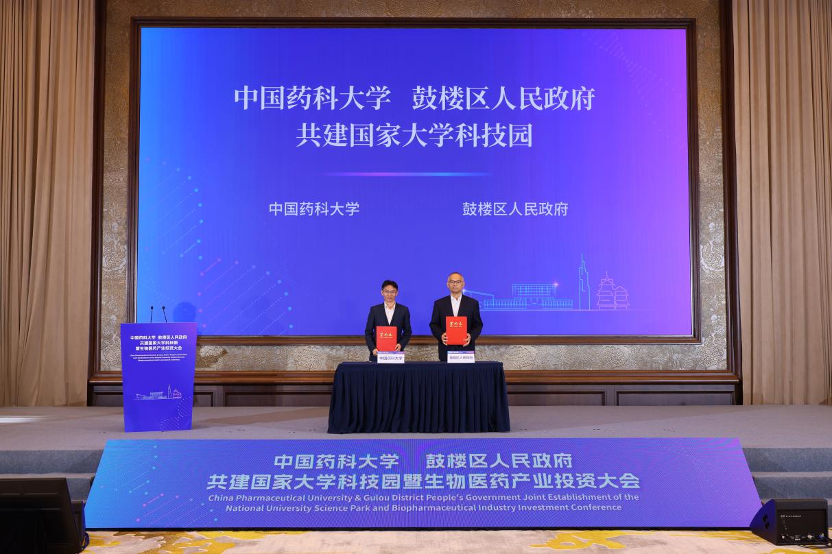 当天下午,我校与鼓楼区人民政府正式签约,共同创建国家大学科技园。双方以“有组织科研”为核心,以“区域协同”与“校地企融合”为两翼,整合周边高校、研发机构与三甲医院资源,构建“政产学研医用金”协同创新的良好生态,重点推进玄武门校区10.7公顷区域的整体规划与功能提升,共同构建1.34平方公里的“环药大生物医药产业集聚区”。