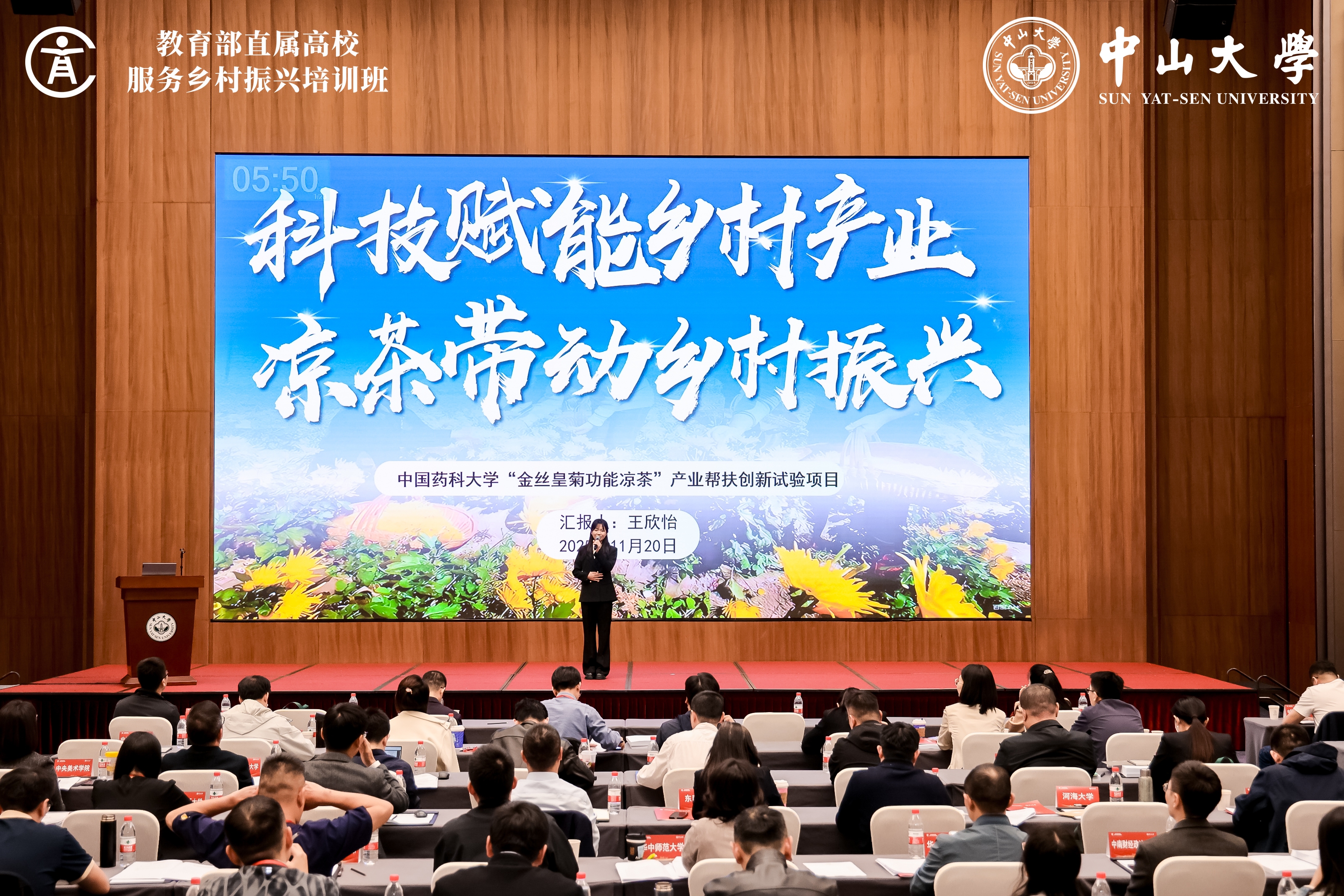 我校中药学院创新试验项目聚焦镇坪县“金丝皇菊”资源,依托谭宁华教授团队科研力量,开发高附加值功能凉茶并取得良好市场效益,将大学生创新创业实践项目与乡村振兴实践完美结合,构建“高校研发+县域生产+全域营销”产业帮扶范式,带动1500余户农民增收,人均增收1800元,年销售突破70万元。